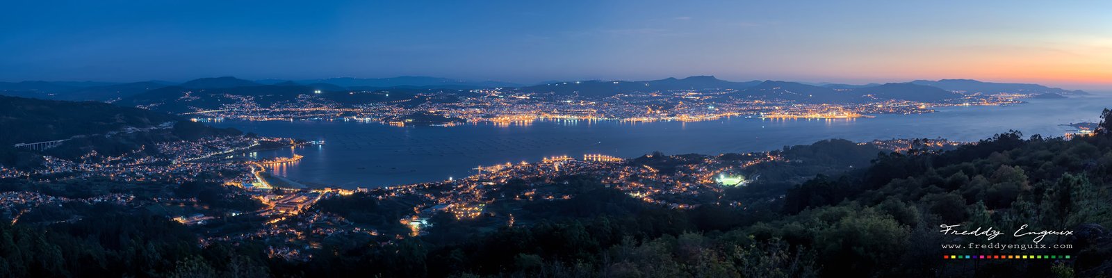 The Ría de Vigo (Vigo's fjord) is a lovely place. During the day is truly beautiful, but after sunset when the lights starts to illuminate all, it's breathless! Lucky me to have the privilege to live in this place.