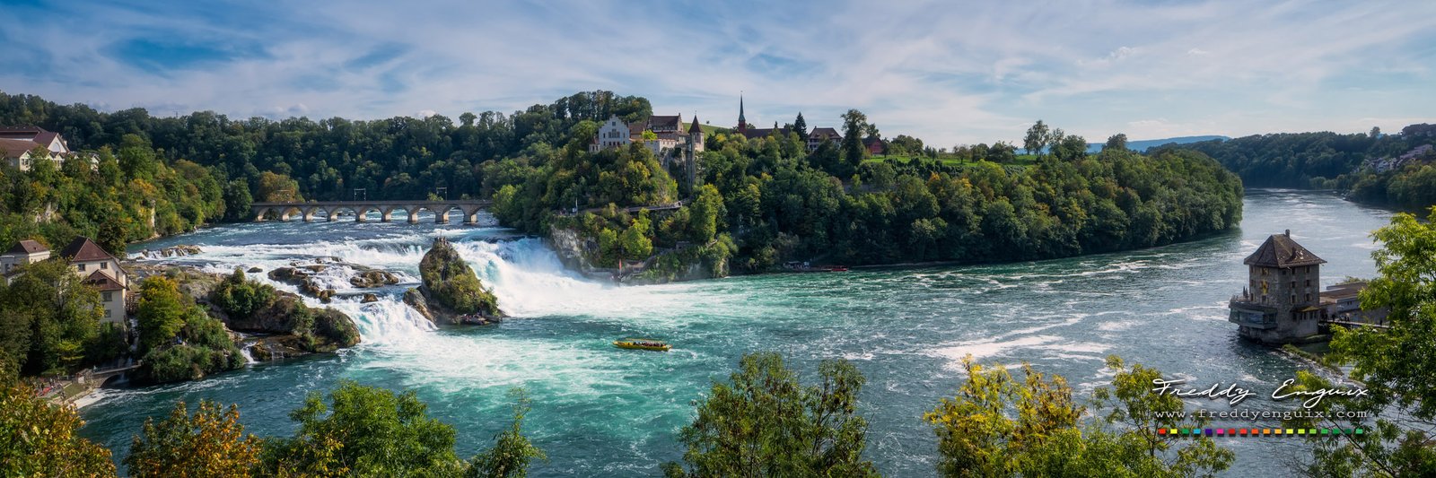 The Rhine Falls (Rheinfall in German) is the largest plain waterfall in Europe. Look how awesome looks in the beginning of the Autumn!