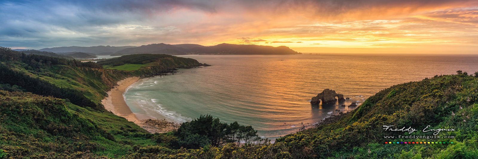 A stormy day is almost at the end, but is not going away without leaving us with a fabulous sunset like this. Check out the amazing landscape of the green coast, with outstanding beaches, incredible rocks, and an intimidating cape in the background.