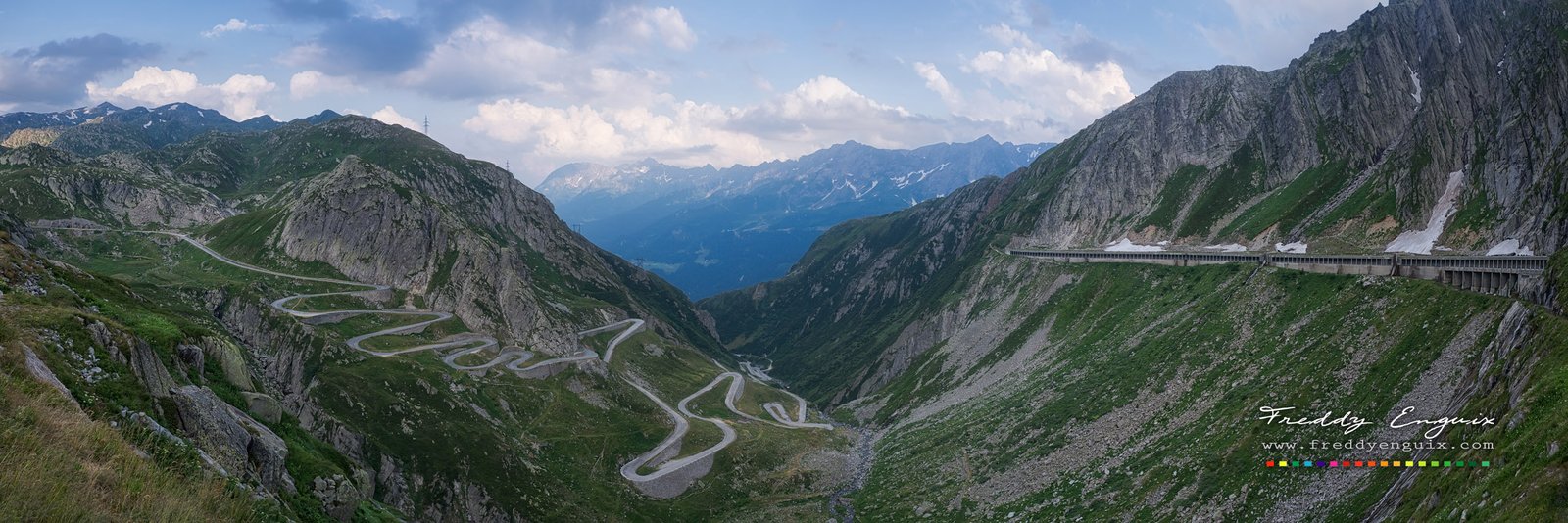 This is the Gotthard mountain pass, at more than 2.000 metres high, crossing the Swiss Alps from north to south. Here you can admire the beautiful old road that served for years and years to cross these mountains. And in the right, the actual road in almost straight line trough the mountain. Which do you prefer? I'm with the old style road!
