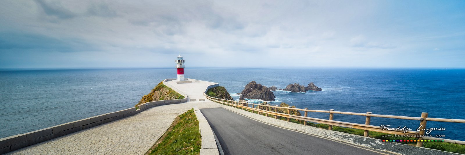 This is the cape and lighthouse of Cabo Ortegal, in northwestern Spain, and is like "the corner" of the Iberian peninsula. They are not only dividing waters of the Atlantic ocean and the bay of Biscay, that are also dividing weather! Look at the rain coming from the Atlantic fighting to enter to the blue skies of the big bay on the right. Guess who won? (Yes, I ended inside the car)